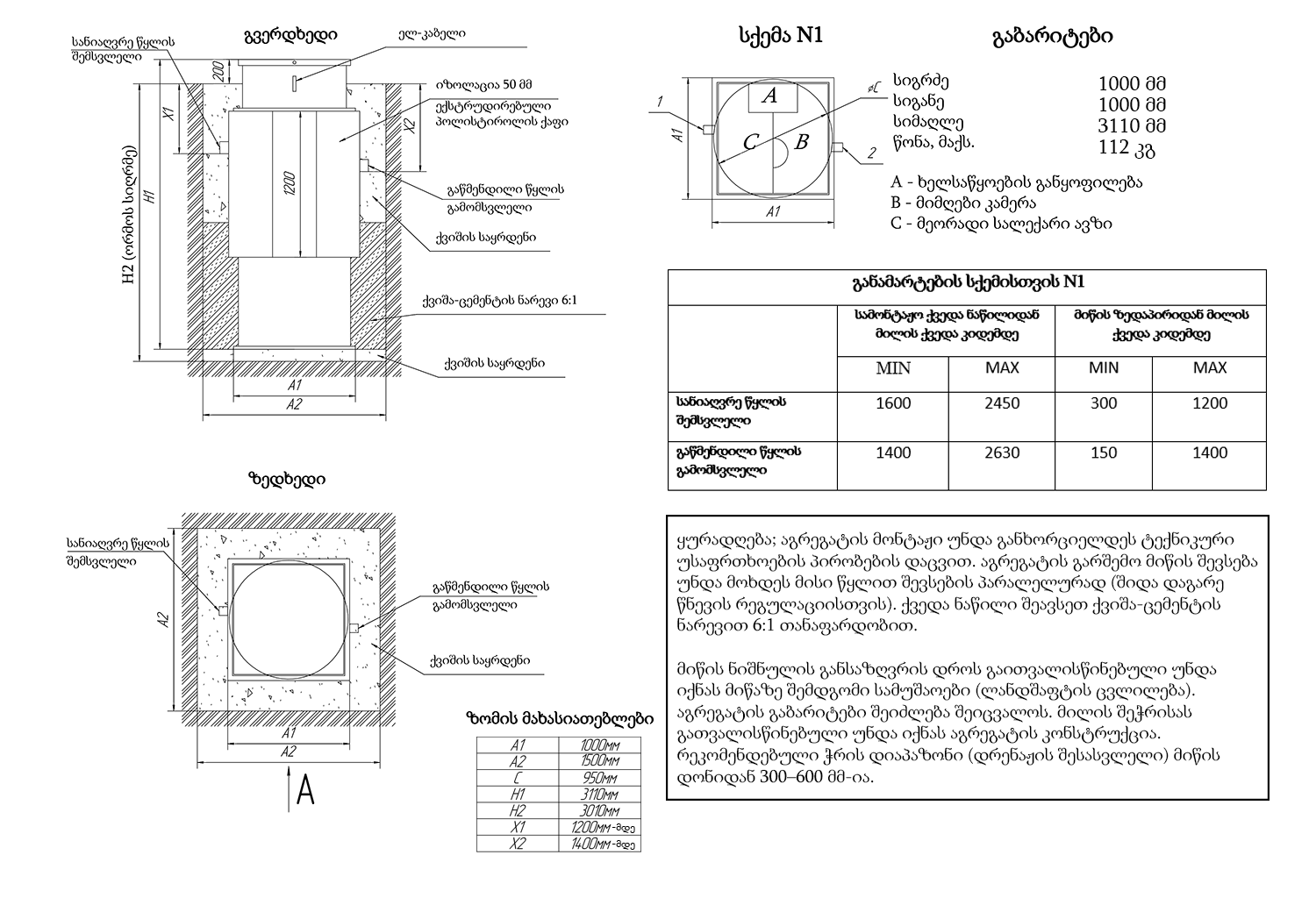 შემსვლელი მილის სიღრმე მიწის ზედაპირიდან 1200 (მმ)