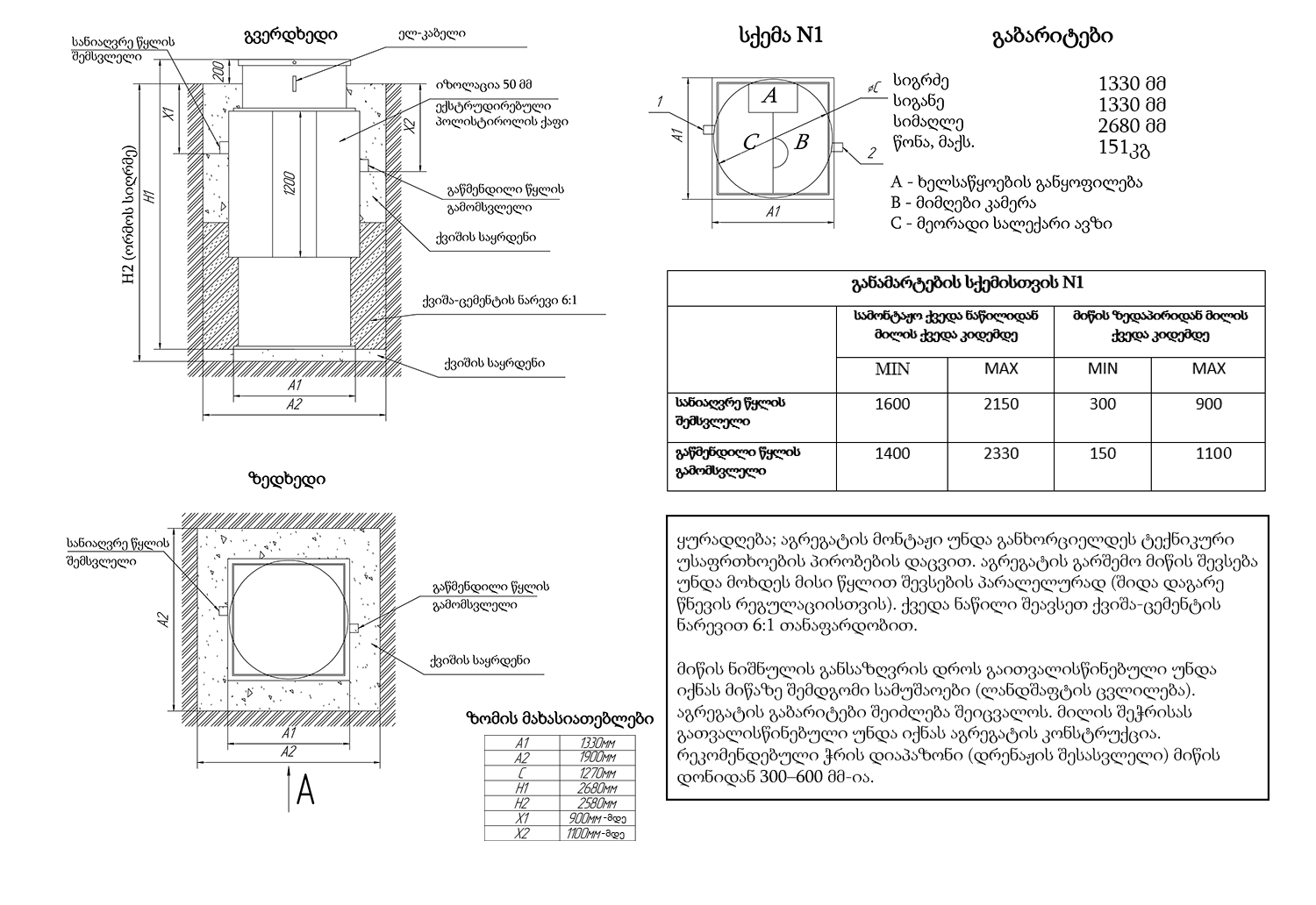 შემსვლელი მილის სიღრმე მიწის ზედაპირიდან 900 (მმ)