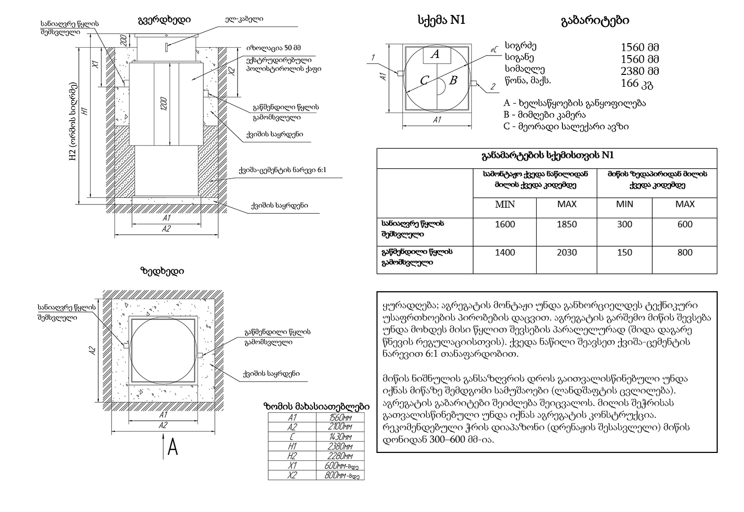შემსვლელი მილის სიღრმე მიწის ზედაპირიდან 600 (მმ)