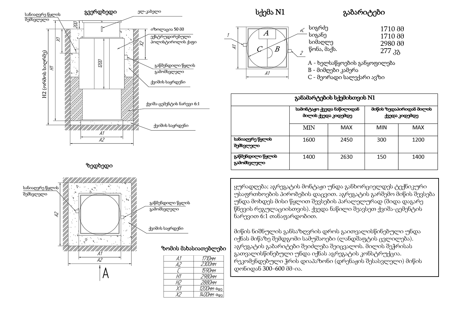 შემსვლელი მილის სიღრმე მიწის ზედაპირიდან 1200 (მმ)