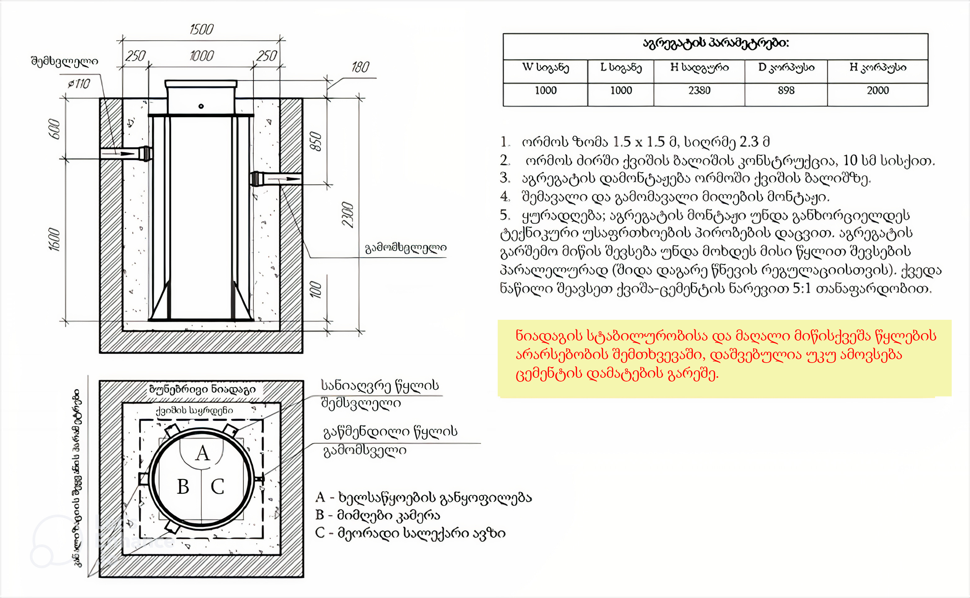 ღრმა ბიოლოგიური გაწმენდის დანადგარი ეჟექტორული აერაციით, რომელიც უზრუნველყოფს ჩამდინარე წყლების 98%-მდე გაწმენდას.