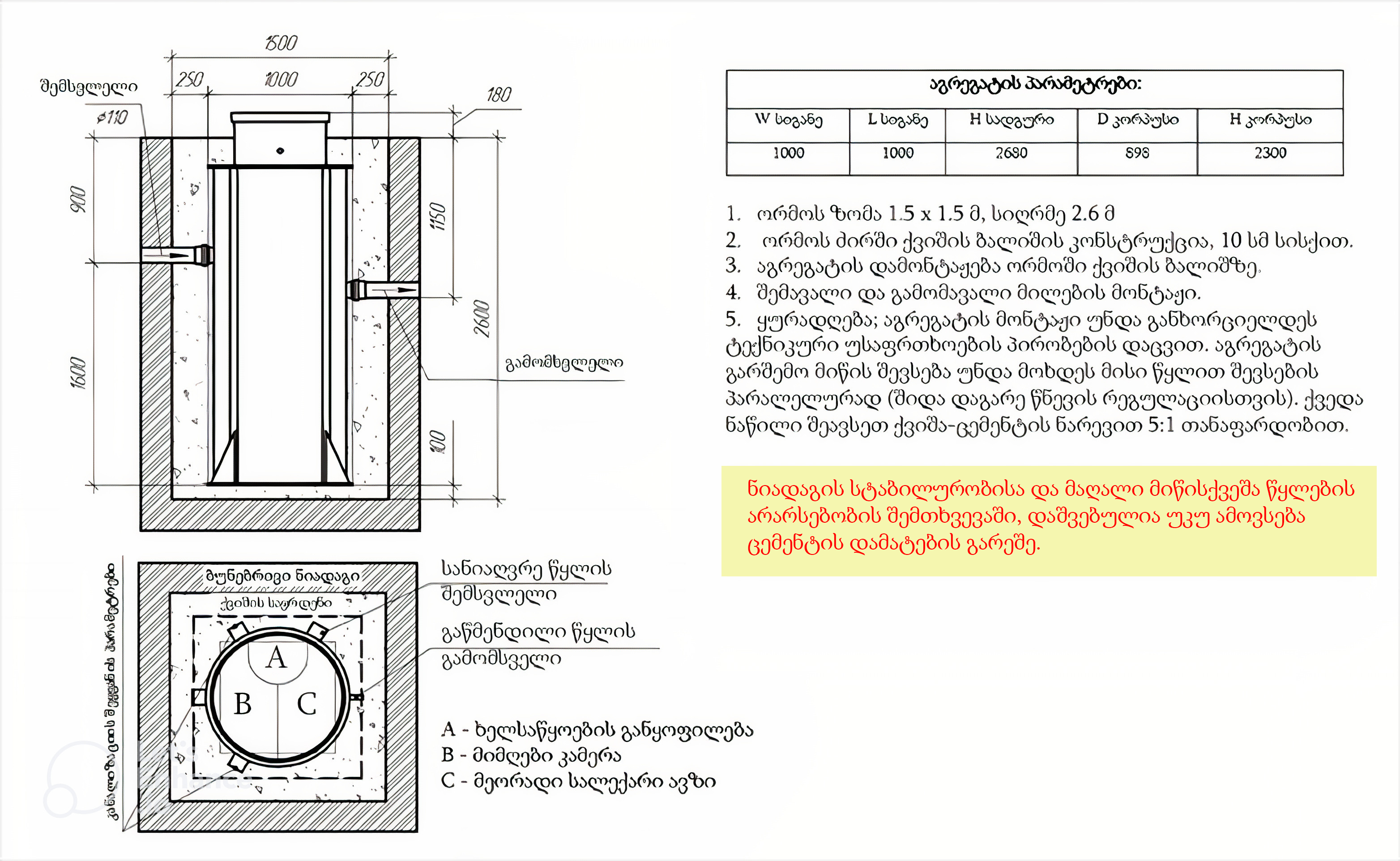 შემსვლელი მილის სიღრმე მიწის ზედაპირიდან 900 (მმ)