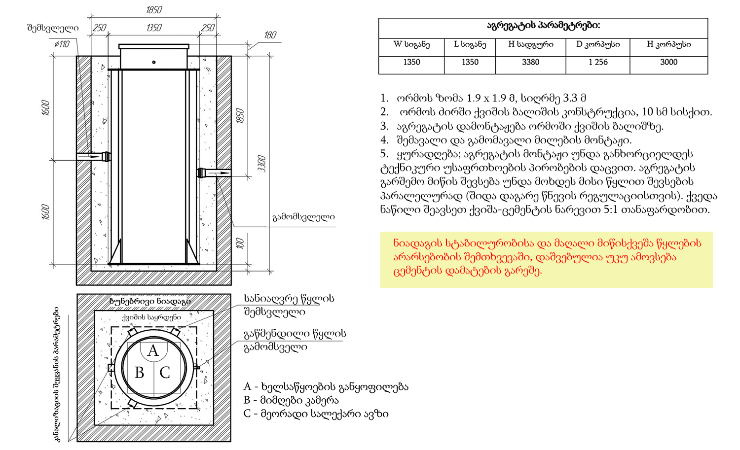 შემსვლელი მილის სიღრმე მიწის ზედაპირიდან 1600 (მმ)