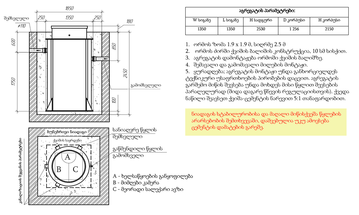 ღრმა ბიოლოგიური გაწმენდის დანადგარი ეჟექტორული აერაციით, რომელიც უზრუნველყოფს ჩამდინარე წყლების 98%-მდე გაწმენდას.