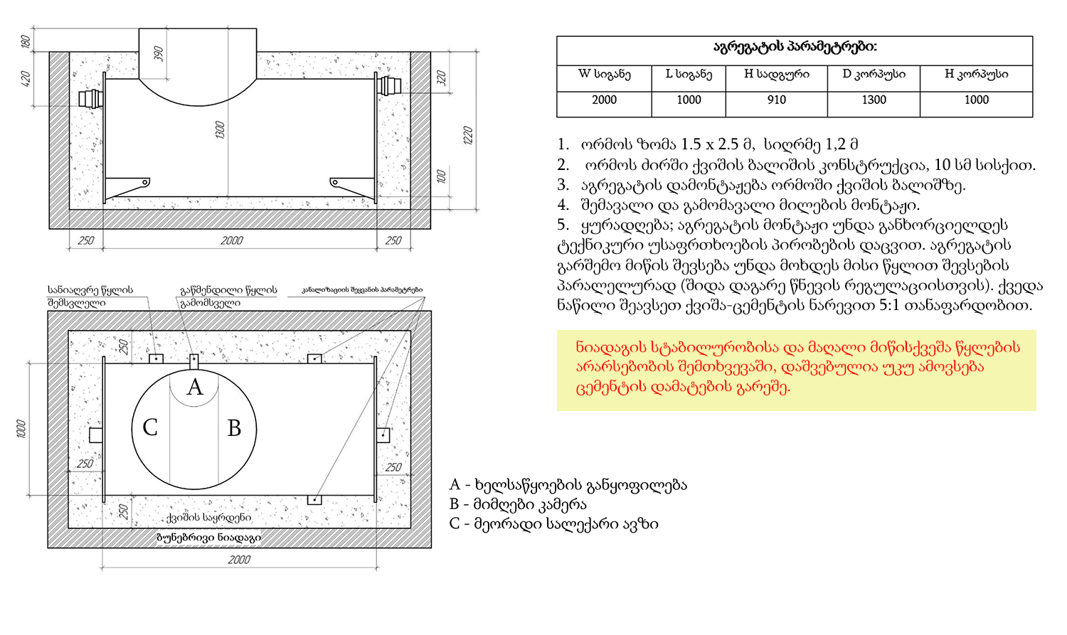 შემსვლელი მილის სიღრმე მიწის ზედაპირიდან 300 (მმ)