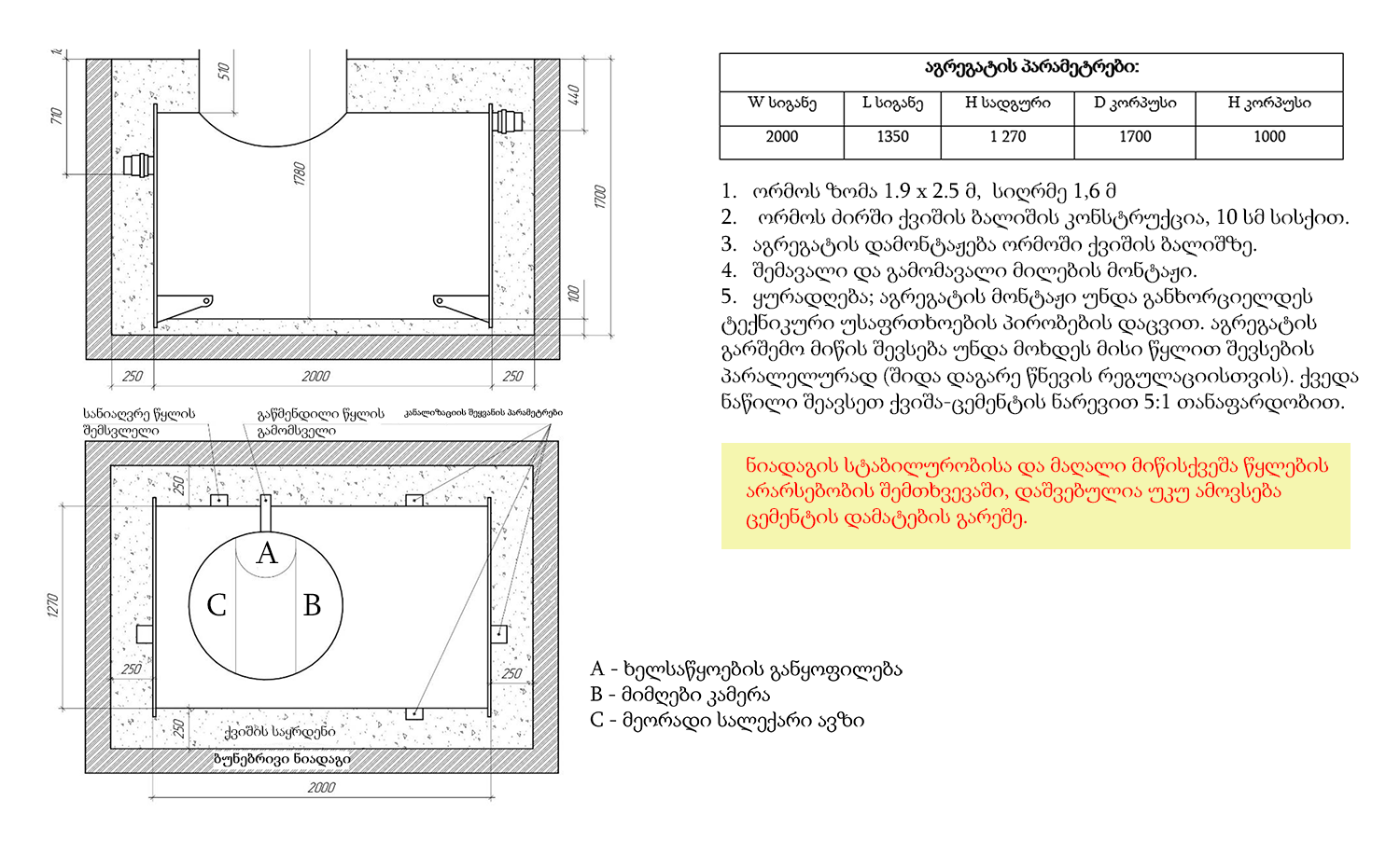 შემსვლელი მილის სიღრმე მიწის ზედაპირიდან 450 (მმ)