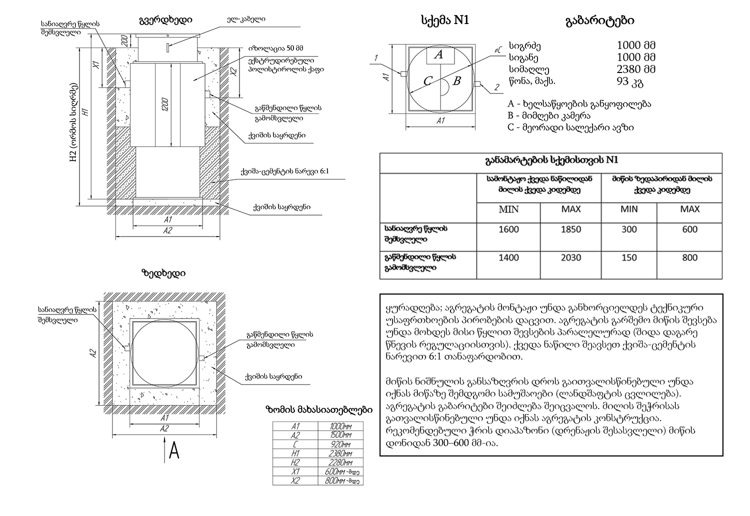 შემსვლელი მილის სიღრმე მიწის ზედაპირიდან 600 (მმ)