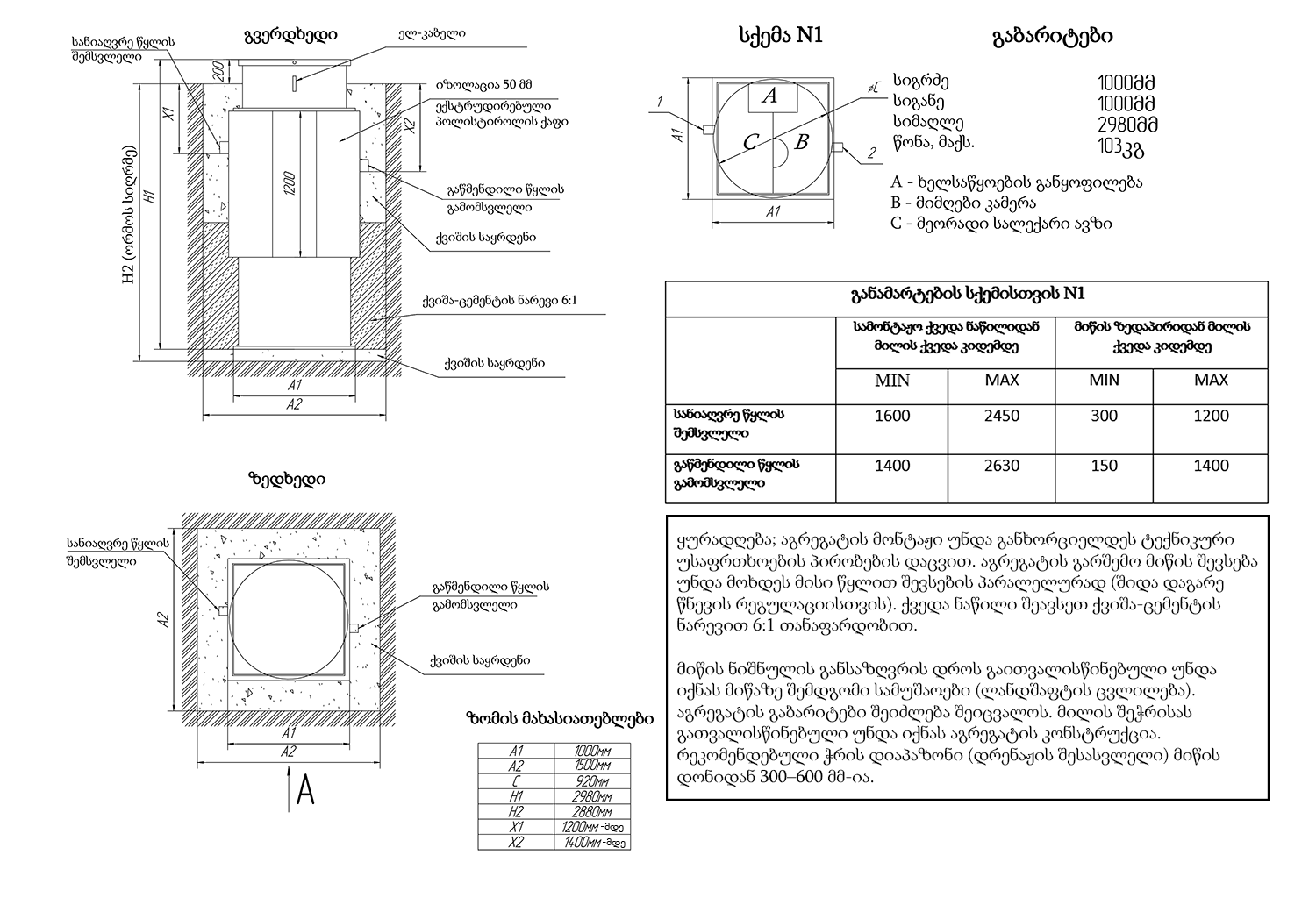შემსვლელი მილის სიღრმე მიწის ზედაპირიდან 1200 (მმ)