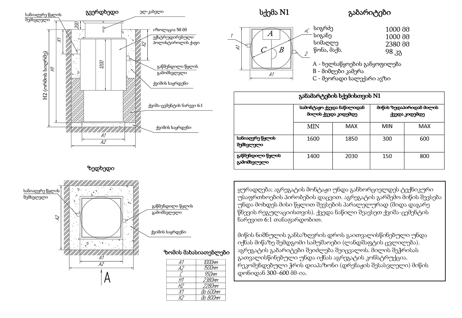 შემსვლელი მილის სიღრმე მიწის ზედაპირიდან 600 (მმ)